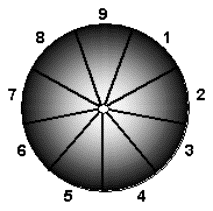 Think of this diagram as a dartboard. We could toss a dart at the board. Wherever the dart lands, we have hit a particular personality type, with a particular wing, of particular dominance. The personality type is defined by the particular "pie slice" in which the dart lands. The direction and dominance of the wing is defined by how close the dart lands to an adjacent type.